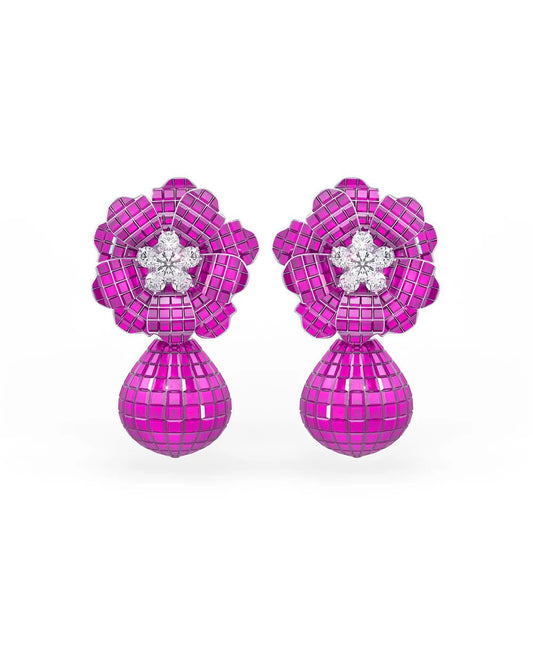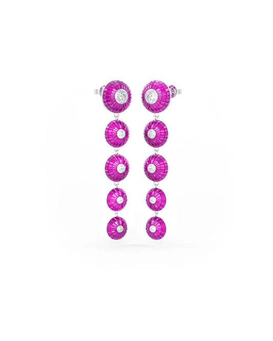 Fuchsia Pink Cascade Disc Dangler Earrings